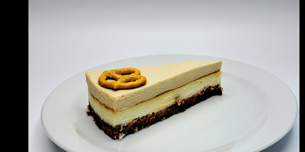 Biscuit base, cottage cheese, caramel topping, Twix chocolate